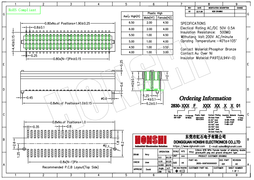 Pitch | 0.5/0.635/0.8/1.0mm |